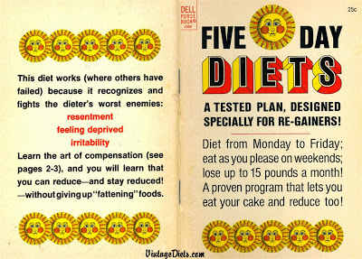 This book promised I’d lose 15 pounds in one month. All I had to do was diet 5 day’s a week and eat as I please on weekends.