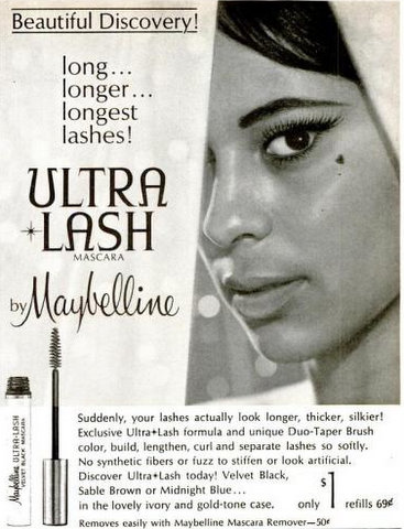 In 1964, Great Lash Mascara was born and featured a beautiful young Black Model, who spoke in code, to the growing liberated female market. The genius in this Ad was connecting Civil Rights with Women’s Rights. 1964 was the year that changed America, both Culturally and Politically.